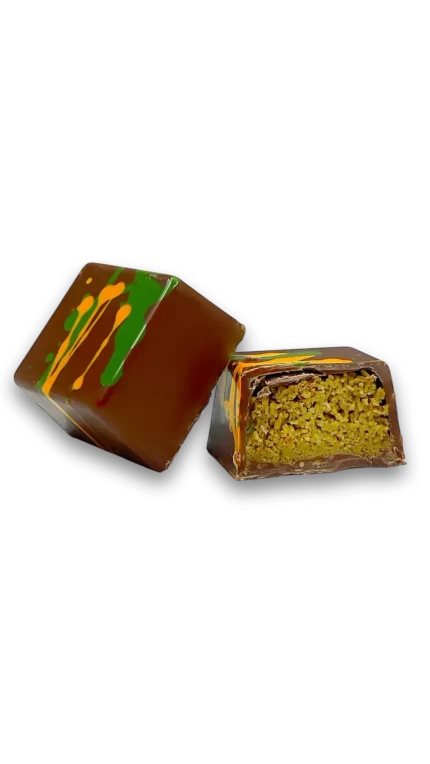Один із найяскравіших представників колекції «Дубайський шоколад» — це плитка Crazy nuts, яка поєднує в собі хрусткий акцент та насичений горіховий смак. Ніжна горіхова джандуйя у тандемі з катаїфі створює неповторну текстуру та смакову глибину, що підкорює з першого шматочка. Такий шоколад стане ідеальним подарунком для друзів, родини або для себе, якщо ви справжній гурман і цінуєте унікальні солодощі.
