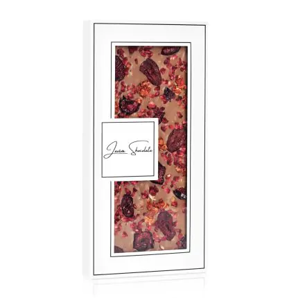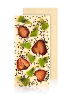 Справжня солодка історія у кожному шматочку! Вершковий білий шоколад поєднується з сублімованою полуницею, цукатами ківі та насінням чіа, створюючи свіжий фруктовий смак і легку текстуру. Ідеальний варіант для любителів яскравих десертів.